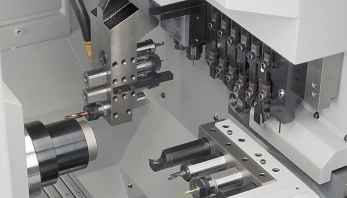 The high speed 10,000 rpm spindle enables optimized machining operations on smaller diameter bar material. The machining length per chucking is now extended to 200 mm enabling the number of re-chuckings and therefore cycle times to be reduced when machining long workpieces. As an option, bar material up to ∅ 25 mm can be machined extending the range of work pieces.