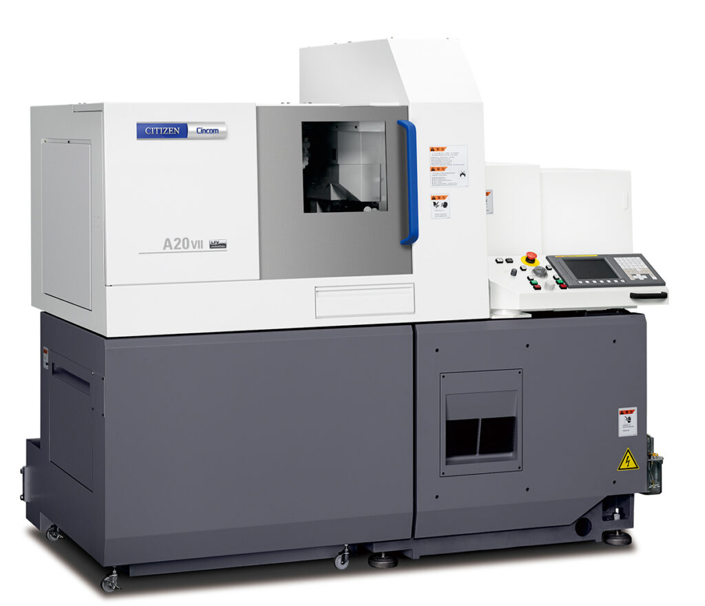 Acclaimed for its excellent cost to performance ratio, this next generation A20 has evolved as a 5-axis machine (plus C1 & C2 as MCC standard) for ∅ 20 mm applications, with the advantage that it can be used with or without the easily mounted and removed guide bushing.